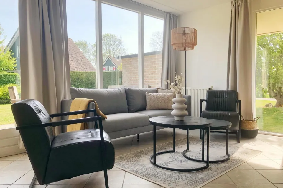 Rondom de bungalow ligt een ruime tuin met grasveld en een zonnig terras. Hier staan tuinmeubels voor u klaar. U geniet volop van de rust en privacy. Voor de auto is er een eigen parkeerplaats met laadpaal voor elektrische voertuigen.