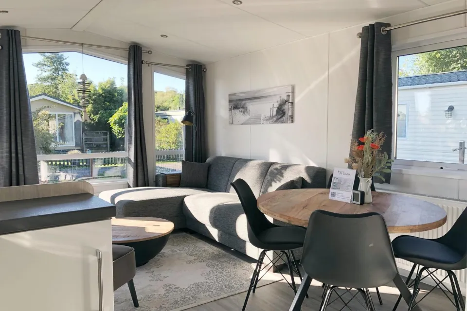 Stap binnen in de lichte en modern ingerichte woonkamer. Neem plaats op de comfortabele bank en ontspan na een dag vol avontuur. Kijk uw favoriete serie op de smart-tv of blijf verbonden met de gratis wifi. De open keuken is van alle gemakken voorzien. Bereid uw favoriete maaltijden met gemak dankzij de vaatwasser en de combimagnetron. De keuken is uitgerust met een 4-pits gasfornuis, een filter koffiezetapparaat, een broodrooster en een waterkoker. De badkamer heeft een douche, een toilet en een wastafel. Hier vindt u ook handdoeken.