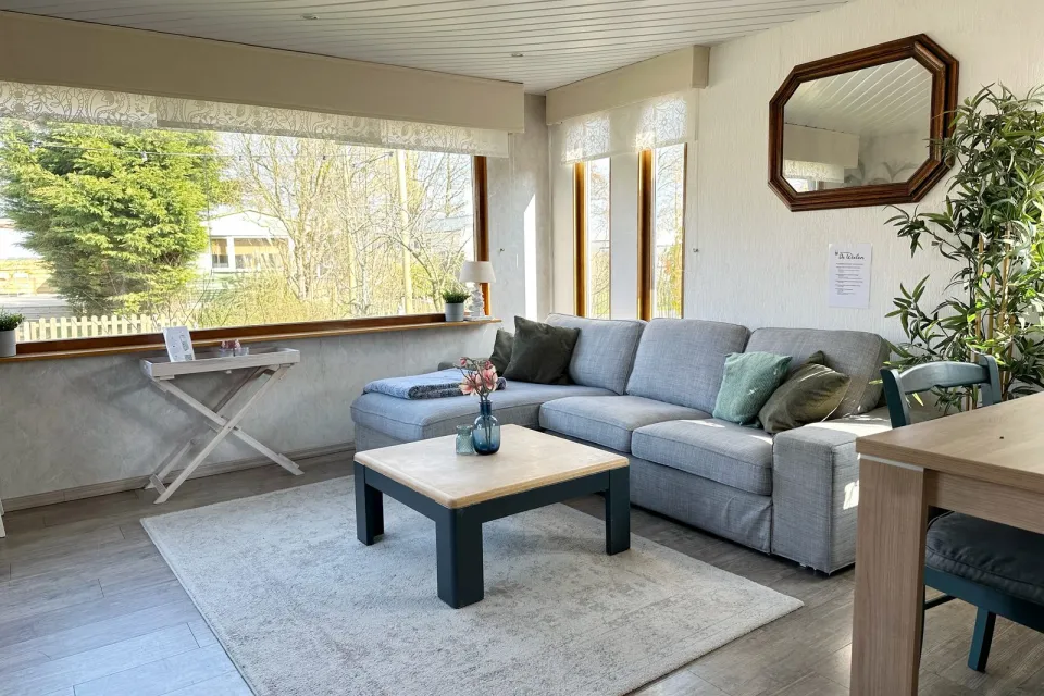 Dit chalet heeft een gezellige woonkamer met een vintage uitstraling. De zithoek met comfortabele meubels geeft je direct een warm gevoel. Aan de eettafel geniet je samen van een maaltijd of een spelletje.