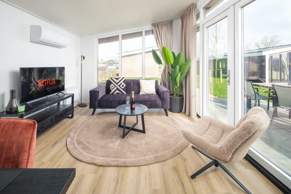 Stap binnen in Zeebries Hottub en voel je direct thuis. Alle kamers zijn handig op één verdieping. De ruime woonkamer is licht en modern ingericht, perfect voor gezellige avonden. Neem plaats op de comfortabele banken en kijk samen een film of speel een spelletje. De grote ramen zorgen voor veel daglicht en een fijn uitzicht. Hier geniet je volop van jouw welverdiende rust.